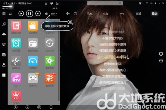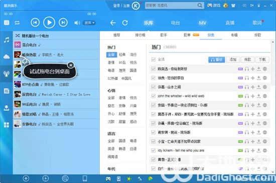 1.酷狗音乐pc版官网下载音效内核,专业打造3D丽音、超重低音等音效,