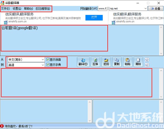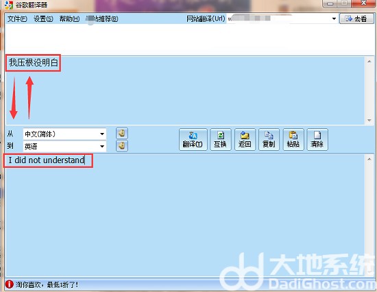 2、只需打开程序即可使用谷歌在线翻译,并有复制及清空按钮,十分方便快捷