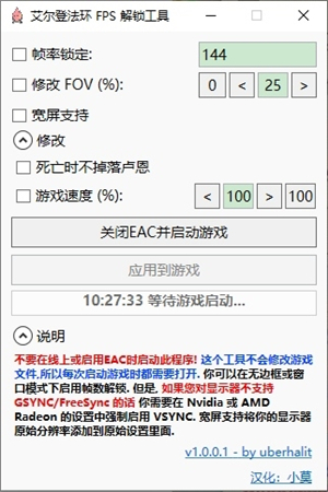 艾尔登法环fps解锁工具汉化版说明