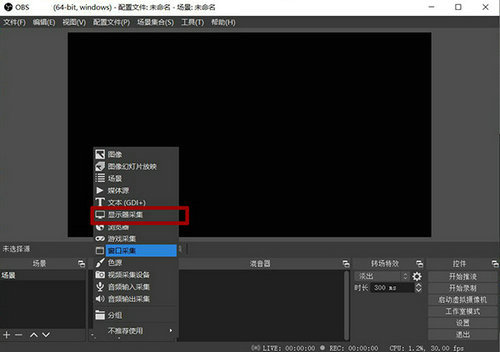 1、打开这个软件,在来源里,鼠标右键添加显示器捕获;