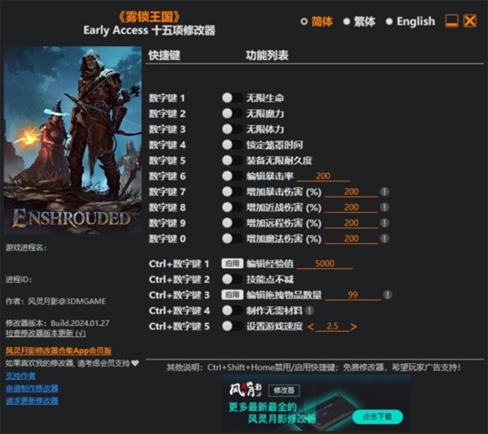 雾锁王国修改器风灵月影免费版软件说明