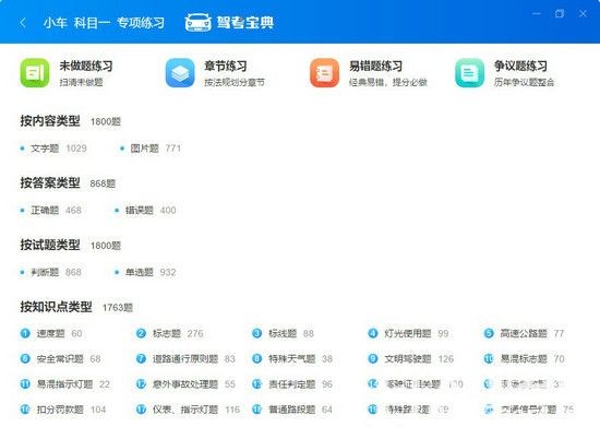 1、章节练习细分章节针对性强,各个击破,全方位覆盖驾照考试