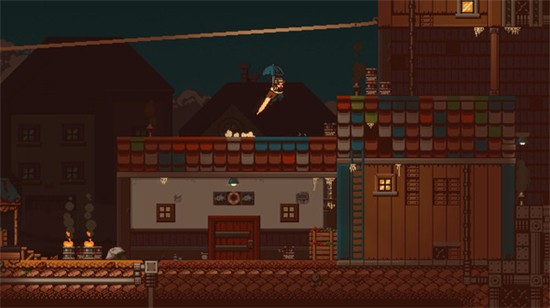 枪伞游侠中玩家可以体验到黑色朋克的风格,在这个背景是依赖迅速减少的自然资源的世界。在枪伞游侠中玩家扮演一个粗野的枪手,寻求复仇,装备着神秘的枪炮。一把兼作雨伞的火器。 他的调查与食尸鬼、匪徒、警察和黑名单的内部运作以及公司剥削的影响有关。因此玩家将会体验到非常丰富的像素设计乐趣还有横版的动作挑战,精彩十足的画面让游戏玩家更加畅快。