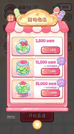 点击装饰就可以买衣服,衣服需要通过直播赚钱来买