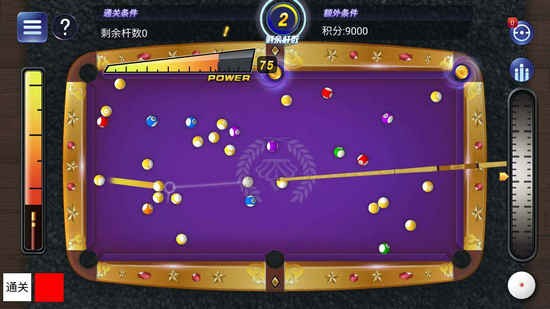 1、点击和滑动就可以轻松将桌球打进袋口,轻松上手