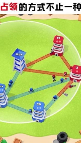 2、玩起来非常的休闲减压,但是也考验你的脑力,不同颜色的线条代表着不同的阵营。