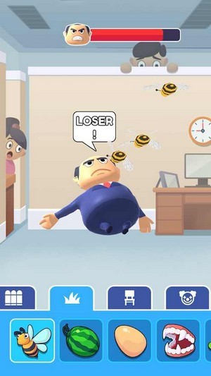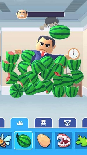 暴打坏老板这款游戏非常的解压,能够让玩家感到非常的新颖,暴打坏老板游戏里面为玩家提供了很多的道具,西瓜、鸡蛋、假牙、史莱姆等等,玩家可以自由的选择进行攻击,采用了卡通的画风,非常适合休闲娱乐时进行操作,玩家需要对于老板发起攻击,血条消失就可以获得胜利。