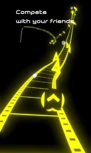 1、在这无尽的过山车旅行中,在穿越障碍时,快速思考,点击切换车道,以达到更高的速度得更高分数。