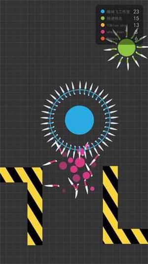 2.我们手指按住屏幕即可移动,当放开手指的时候讲进入防御姿态,防御姿态下所有飞刀刀尖都会朝外