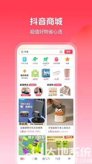 抖音商城版app下载官方正版打开app之后会默认进入商城界面,购物车功能也单独设立了一个独立入口,针对抖音app商城界面进行细致的优化,并且商品在降价的时候会自动发送消息给用户提醒。
