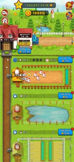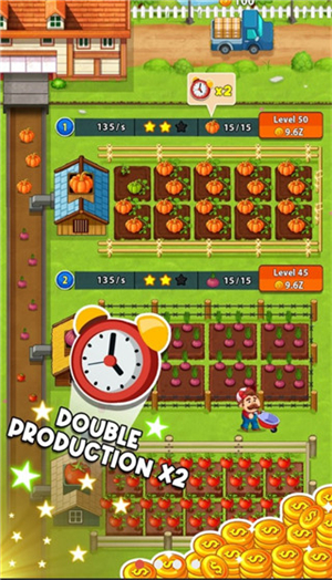 放置农场大亨是一款有趣的农场管理手机游戏。玩家将在游戏中拥有自己的农场,种植和出售各种农作物,放置农场大亨为农场扩张和设备更新赚取收入。一起雇佣和管理更多的员工,解锁更多精彩的农场玩法,非常人性化的管理游戏机制,以独特的商业内容提供全新的游戏体验,玩家甚至可以在这里饲养农场的动物。明亮的卡通风格,通过完成相关任务更好地扩大利润。