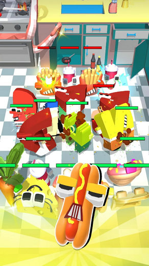 2、玩家要做的就是在场景中寻找相同的食物,然后将它们合并即可。
