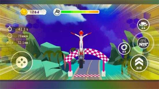 2.进行一系列的精彩比赛和竞速,躲避前方的各种障碍,保持摩托车的速度