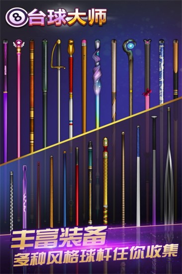 2. 多种球杆和台球桌:游戏中提供了多种不同的球杆和台球桌,每种球杆都有其独特的属性和使用方法。