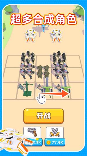 1.玩法多样的合成闯关等你参与,让自己的士兵更加强大获得更多胜利