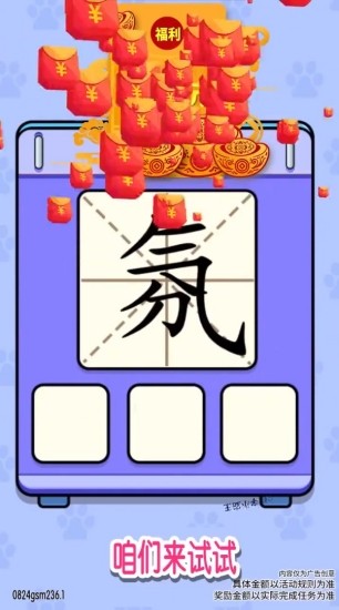 1、汉字黄金屋游戏是非常简单而且十分休闲的游戏。