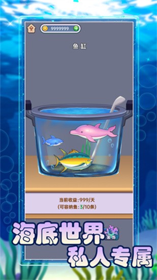 2.玩家可以在海底3万里捕鱼,获得更多的稀有鱼类,丰富自己的水族馆,吸引更多的客人。