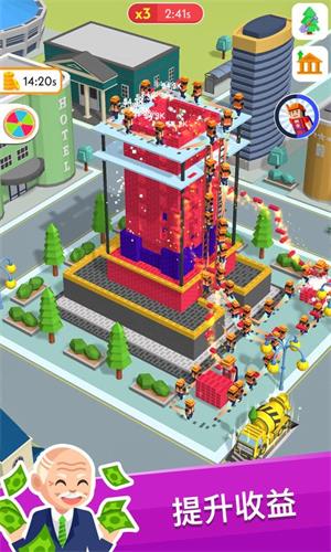 盖楼我贼溜是一款采用卡通画风打造的模拟经营游戏,在盖楼我贼溜游戏里面包含了超多不同的任务和元素,能够让玩家感受到作为老板需要做什么,你需要不断地招募员工,让你的盖楼秩序有条不紊,然后不断地购买土地,能够让你建造更多的楼房,游戏里面的元素不仅丰富,并且每一次完成都可以获得大量的奖励,体验感十足。