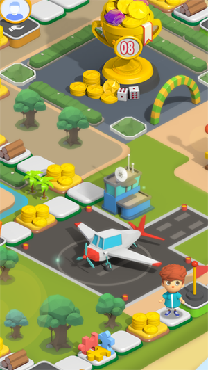 3.在游戏中可以通过掷骰子获得金币和木材,使用金币和木材解锁小镇中的店铺来进行经营
