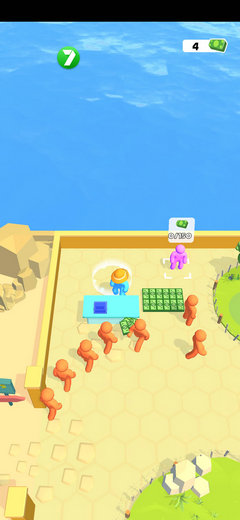 3、游戏前台会有很多游客交付的资金,控制小人来到前台将资金收起来。