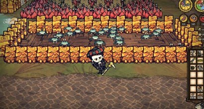 2、夏季热会掉血,可以用热能石+冰箱、遮阳棚、冰火或冰火堆、西瓜帽、冰块帽子等物品降温,也可以站树下或矿区(有些许降温效果),可以晚上出来活动。另外夏天东西容易着火,记得建造常开雪球发射器(及时灭火)。