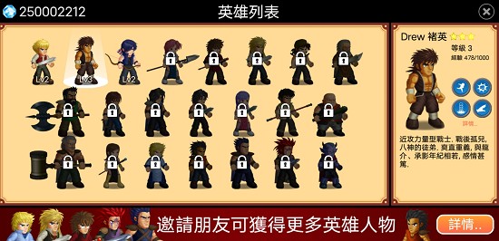 1.游戏拥有22名英雄角色,战场上赚钱招兵买马,特技丰富强大。
