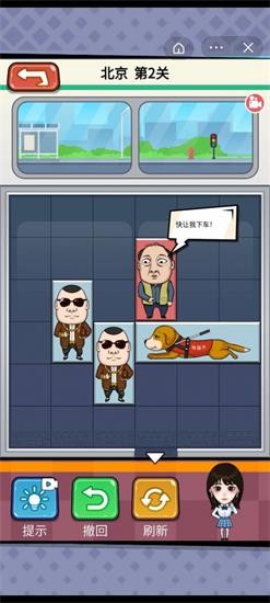 你大爷下公交是一款非常好玩的休闲闯关游戏,你大爷下公交里面包含了丰富的闯关内容,玩家可以感受到非常烧脑的乐趣,游戏的玩法和华容道类似,玩家需要将面前的障碍全部移走,自己才能够成功的出来,并且获得胜利,游戏横向和纵向都可以移动,但是不能斜着,让大爷在规定的地点下车,游戏非常考验玩家的操作技术。