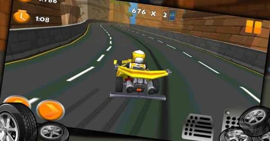 2、点击右下方的按钮来控制角色的加速操作。点击右下方的另一个按钮来进行减速和刹车操作。