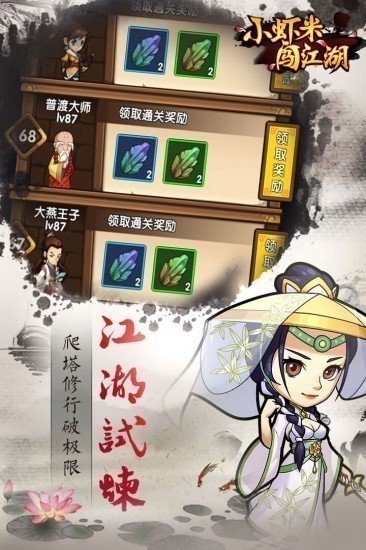 小虾米闯江湖非常具有特色的武侠类游戏,虽然采用了q版的画风,但是体验的竞技效果非常的炫酷刺激,小虾米闯江湖非常适合休闲娱乐时进行挑战,不同的武器能够起到不同的属性加成,游戏中还可以和好友一起冒险,不需要氪金,游戏里面的爆装率非常高,还可以和队友进行相互交换,让你可以更快的进行升级。