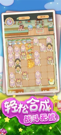 3.这里的保卫战很魔性,食堂需要你的保护,直接来合成,自动战斗,一切都是无比的轻松。