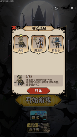 1、玩家共有三个职业可以选择,勇者、魔法师以及神射手,每个都有自己的特色。