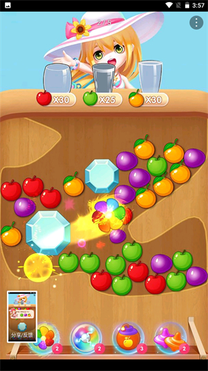 3.去除水果就会成为果汁,中间会产生障碍,古典的消除游戏可以消除压力。