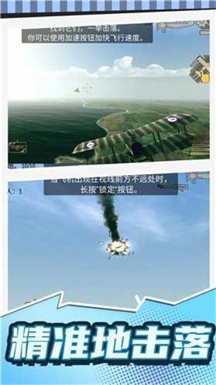 1.真正的飞行战斗,更多的飞机可以在游戏中购买,体验不同的战斗。