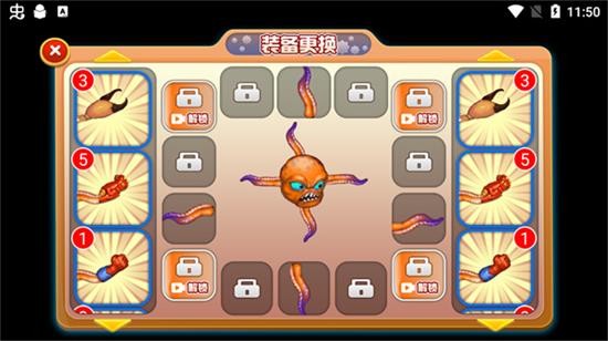 3.利用手指操控章鱼去战斗寻找宝藏解锁炫酷的皮肤进行装扮