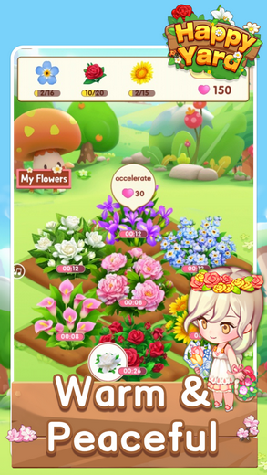 Happy Yard游戏是一款非常欢乐精彩的花园题材模拟经营游戏,专门为喜欢养花的玩家们打造,可以在自己的花园中,自由种植各种各样的花卉,享受欢乐的玩法,以及更多的成就,轻松简单的点击操作方式,多种多样的花卉种类,随意解锁。