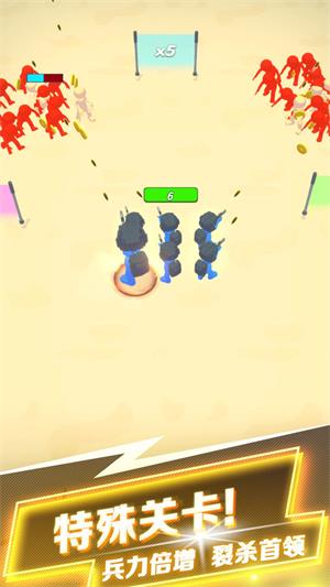 1.游戏中玩家不是单枪匹马作战,而是可以在闯关过程中不断增加兵力进行战斗