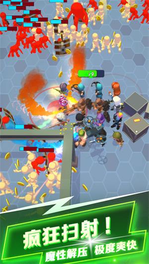 2.游戏采用自动瞄准射击的扫射玩法模式,玩家可以带领你的小兵尽情的射击