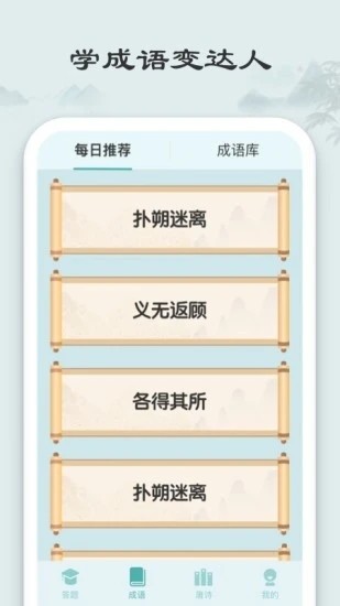 1.这里每天都会有成语挑战,你不仅能学到成语知识,还能获取奖励