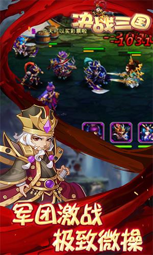 决战三国是一款非常好玩的角色扮演游戏,在决战三国游戏里面,玩家将会作为三国战将进行战斗和冒险,游戏非常考验玩家的操作技术,并且每一场战斗都非常的热血刺激,完成任务获得的奖励,可以用来招募士兵,攻占城池,让你的战斗变得更加热血,还可以加入公会,认识到更多志同道合的好友一起竞技冒险,乐趣十足。