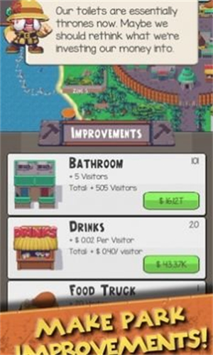 2.玩家需要新的类型来引导更多的游客,赚很多钱,解锁。