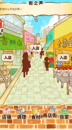 3、在商店街可以买到缺少的食材、食谱之类的。