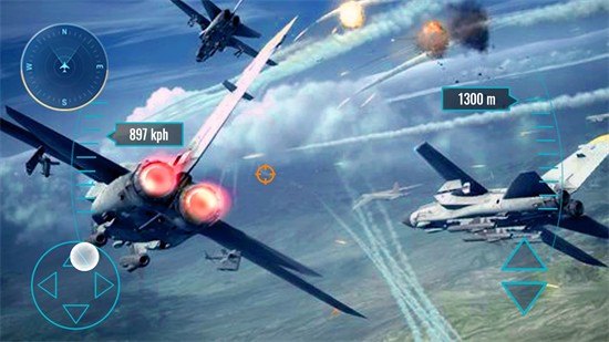 3.各种攻击武器。碰撞也更容易发生。解锁超级战斗机为你战斗,模拟经典飞行。