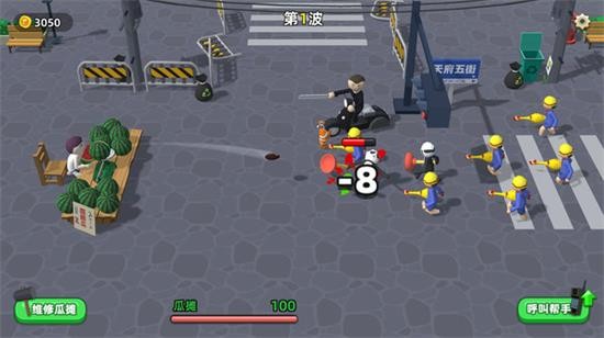 3.拿起武器就是之间怼敌人,作为西瓜摊主想要保护自己的西瓜摊不是这么的容易的
