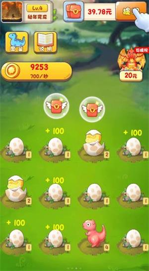 2.玩家主要依靠饲养恐龙来赚取金币,恐龙孵化的速度越快
