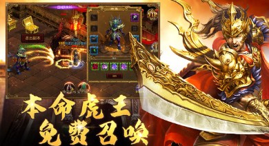【虎王召唤,称霸全场】 传世虎王震撼觉醒,上线即可免费召唤本命虎王,职业和虎王之间可自由配合,助你轻轻松松收割首领,元宝、套装统统拿到手软!