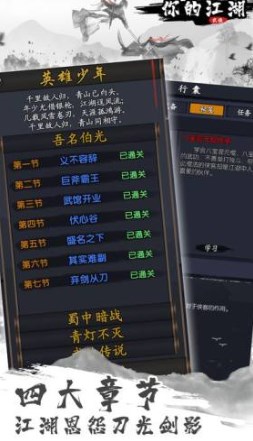 你的江湖破解版无限元宝版是一款为以文字剧情为主要玩法的全新武侠江湖冒险游戏,在游戏中玩家们可以通过文字的描述和图片了解到一个全新的江湖世界,在你的江湖破解版无限元宝版中玩家们可以通过完成各种考验,增长自身的属性数值,在游戏中提供的丰富剧情冒险任务每个都是不同的精彩,玩家们可以通过这些任务更好的融入江湖,展开对这个江湖的更多探索。