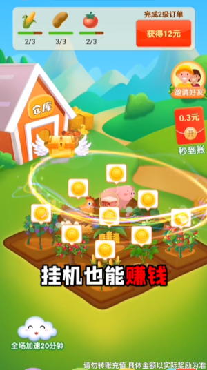 1.模拟开农场,蔬菜随便种,赚的钱还能提现,0.3元秒到账