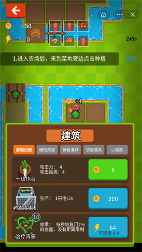 2.这些炮塔可以击败僵尸,如果你有足够的钱,你需要及时升级房间门和植物级别
