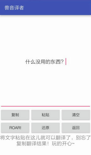 兽音译者官网版安卓版下载是一个非常有趣的语言转换工具,可以将您所说的内容快速转换为多种动物语言,使交流更加生动有趣。极为另类的方式将你所想要表达的文本内容进行全面的加密,没有特定的软件的话是完全解不开你所加密的内容的。