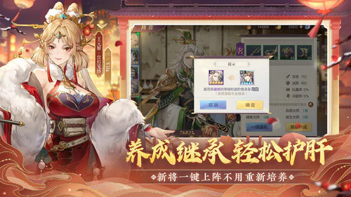 1、武将切换,等阶装备一键转移,资源均百分百继承,阵容调整更轻松!